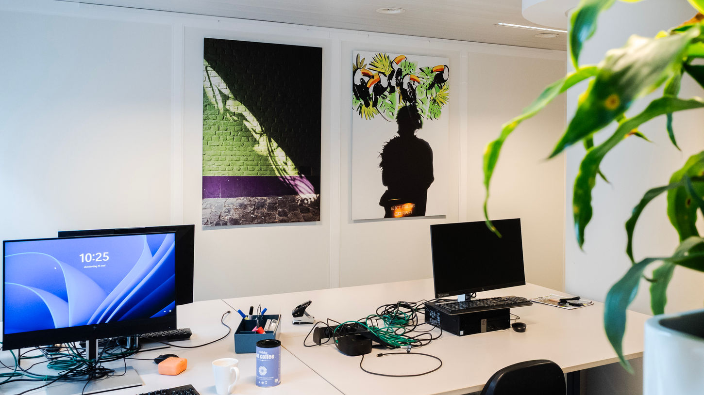 Paté Patiné mocht de bureauruimten aankleden van Sociaal Werk op campus Brussel van Odisee. We zijn blij dat onze artistieke insteek een permanente plaats kreeg in de werkruimten en — hopelijk ook — in de harten van al diegenen die de ruimten bevolken.